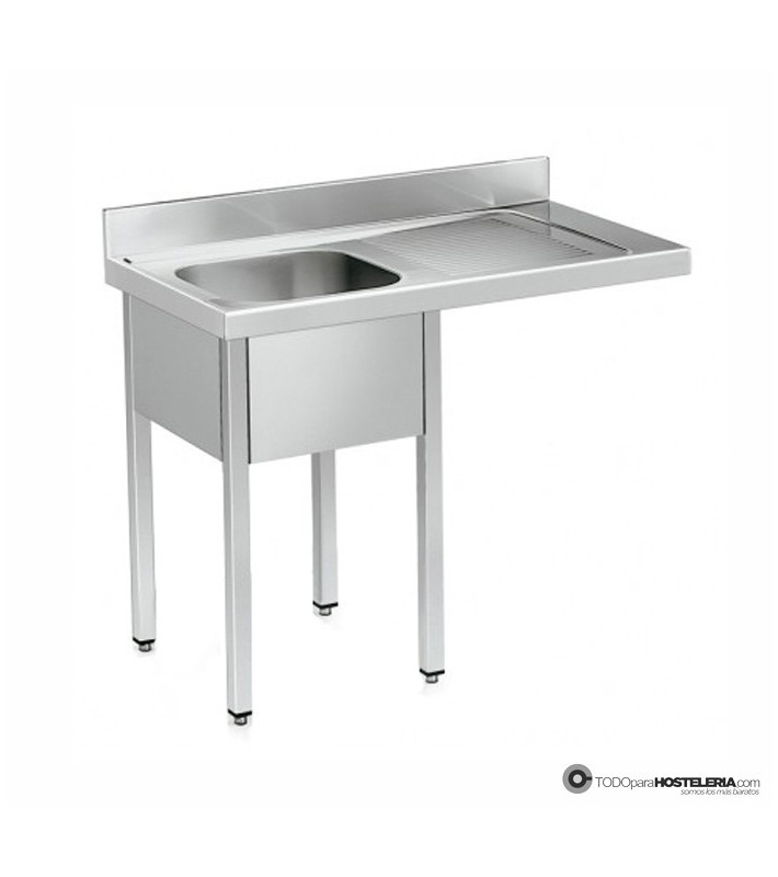 Fregadero con bastidor y espacio para alojar el lavavajillas o lavavasos estándar bajo el escurridor.